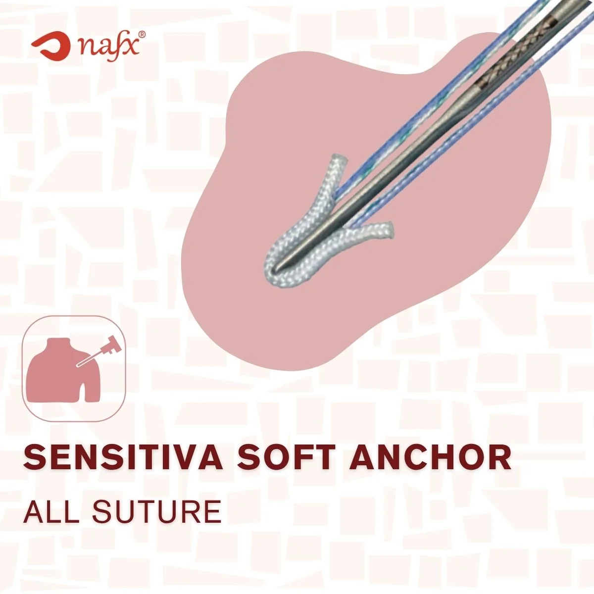 Developed for rotator cuff repair, Bankart lesion repair, SLAP lesion fixation, and other soft tissue surgical procedures, the Soft Anchor provides excellent tissue integration and strong fixation. Its **all-soft construction** allows for **minimal bone disruption** while ensuring **secure tissue attachment** in arthroscopic and open surgeries.