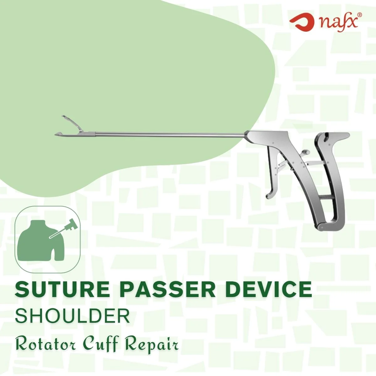 The Scorpion-like Suture Passer is a precision-engineered instrument designed for efficient suture passage during shoulder arthroscopy. Featuring a side-loading mechanism and a dual-jaw system, it enables seamless passing and retrieval of #2 sutures through soft tissue. Its low-profile, streamlined jaws are optimized for maneuverability within the glenohumeral space and compatible with standard arthroscopic cannulas. Ideal for rotator cuff and labral repairs, this passer enhances procedural efficiency and minimizes tissue trauma.