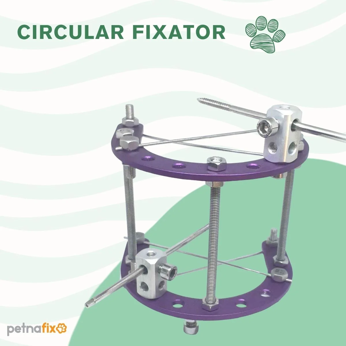 Circular External Fixator System For Fixing The Medium Animals Bone Fractures. It is produced according to ilizarov fixation principals. It is useful to fix the bones of pet animals between 15 kg